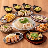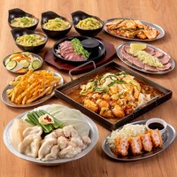 「大とろホルモン塩もつ鍋」をメインに、出来たての生キムチや酢もつ、旨辛水餃子など多彩な前菜に厚切りハムカツなど食べごたえのある逸品も。 〆はちゃんぽん麺で最後まで大満足のコースです◎