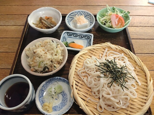 うどんを推していたのでうどんの定食で、暑くなって来ていたので、冷ざるをチョイス。あとご飯は大盛に。