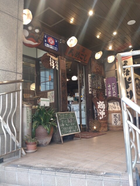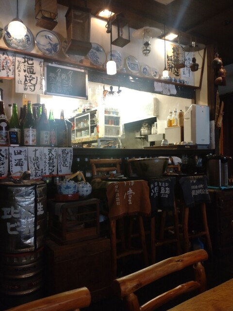 お店は京王八王子駅より西側へちょっと歩いた路地に入った、ビルの2Fで1Fには幟が立っていました。外観内観と和風のお店の雰囲気でしたが、ボトルなど少しゴチャゴチャしていました。席はテーブル席と座敷席でした。