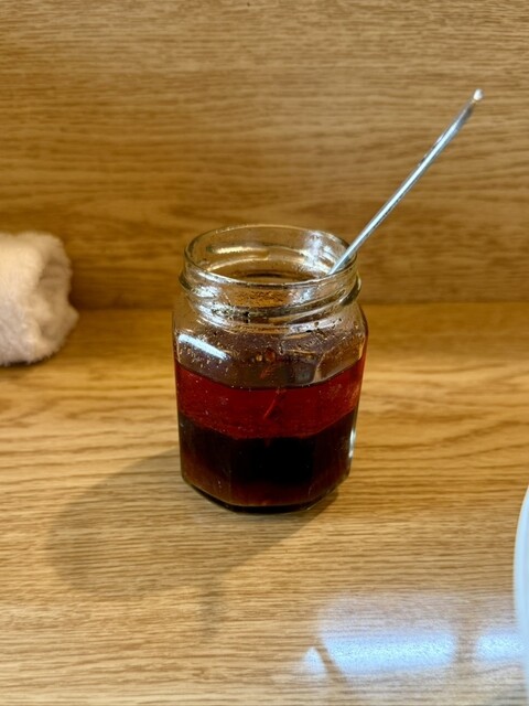 赤い麺は辛そうですが、そんなに辛くなくておいしかったです。
