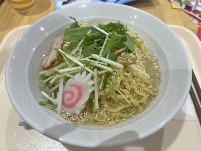 期間限定ラーメンが愛媛の鯛塩ラーメンという事で注文。あっさりしていたが、鯛の味は感じなかった。でも冷やしラーメンという意味では美味しかった。特にコスパが良かった。50円が大盛なので... 詳細を見る