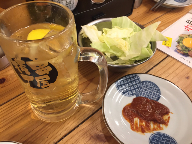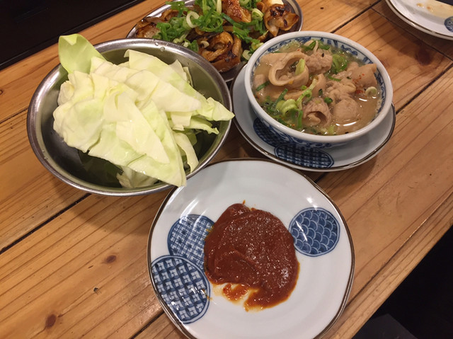 土曜日1615訪問 3割の入り ・キャベツ(お代わり可)¥220×2 ・生中¥490×2 ・スーパーホルモンロール¥190×2 ・ジャンボやきとり¥200 ・酢もつ小¥3... 詳細を見る