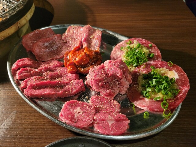 後輩と焼肉を食べることになり八王子駅前で探してみたところ、かなりお得なコースを提供しているこちらのお店にしてみました。「超お得勇拓堪能コース」というコースで、この日は下記19品が出て、3時間飲み放題がついて5,000円!ちょっとこの安さ、考えられません。タン、ホルモン、ハラミのクオリティの高さはもちろん、最後のカルビ系にいたってはA5ランクの宮崎牛!前菜やサラダも抜かりなくおいしい♪さらにライス食...