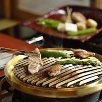 丹念に育てられた鶏と、うかい特選和牛を 炭火焼で一度におたしみいただけるコースです