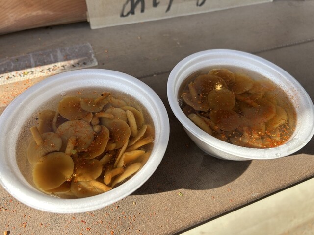 なめこ汁(400円)/味噌田楽(530円)/カレーなんばん(1,000円)/地酒 高尾山(530円)