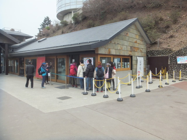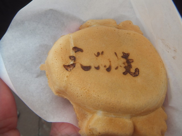 途中まで歩いていると、ケーブルカーの駅が見えてきました。ちょっと休憩するかと辺りを見回したら、天狗焼きなるお店を発見しました。K兄弟が早速並んでいました。