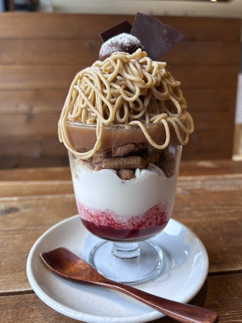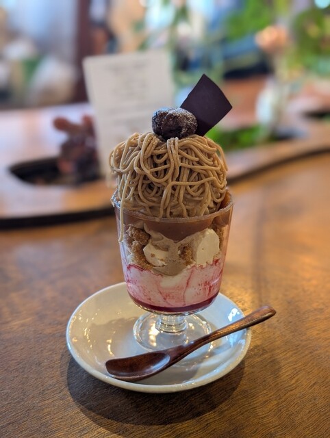 高尾山下山後に、ケーキと迷いましたがせっかくならということでモンブランパルフェ(1,300円)を頂きました。