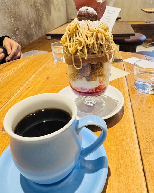 「タカオ コーヒー」でいただいたモンブランパルフェと本日のコーヒー。