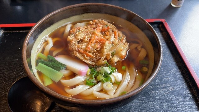 メニュー写真が無いので『かき揚げ』どんなヤツが載ってくるのか楽しみにしていると程なく着丼。アッ駅そばの煎餅タイプ?い...