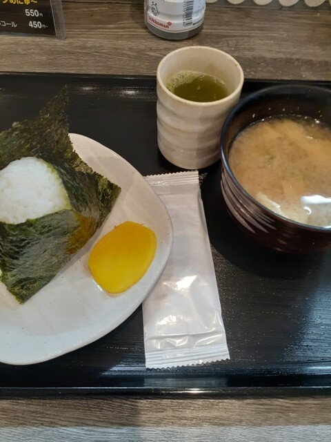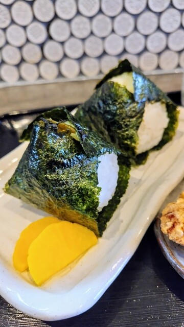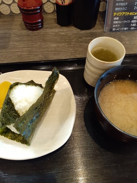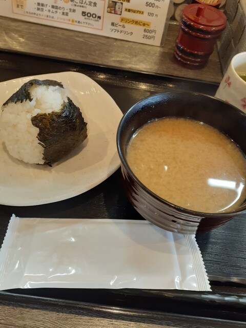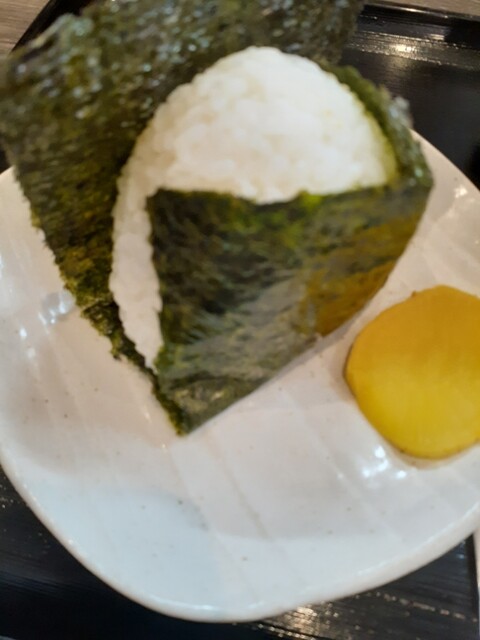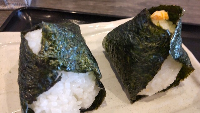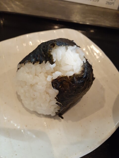 少し大きめのおにぎりはあつあつで塩がきいて美味しい