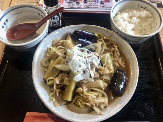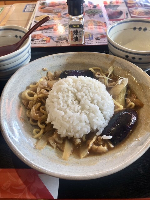 13:10頃、到着 今日は駅前の居酒屋チェーンで昼食です 先客6名 注文はワンコインの麻婆茄子焼きそば一択です 平日の昼飲み客、羨ましす ちょっと時間がかかって10分ほどで到着しました 追い飯付きで税込¥500-は超お値打ちですね ここまでお得だと多少のことがあっても味や店のサービスに接して不満は言えませ...