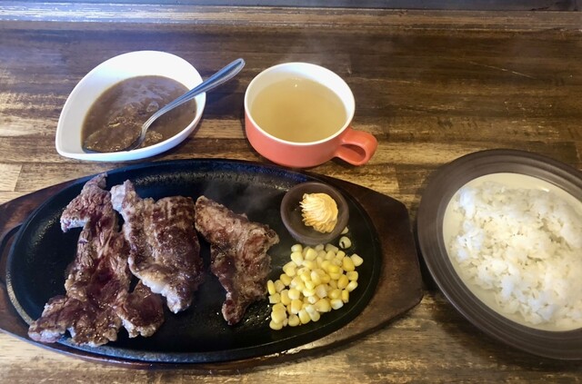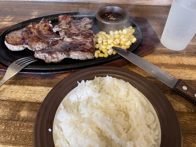 ステーキを食べて元気いっぱい!ライス・スープもお替り自由でお腹一杯!大満足!