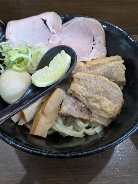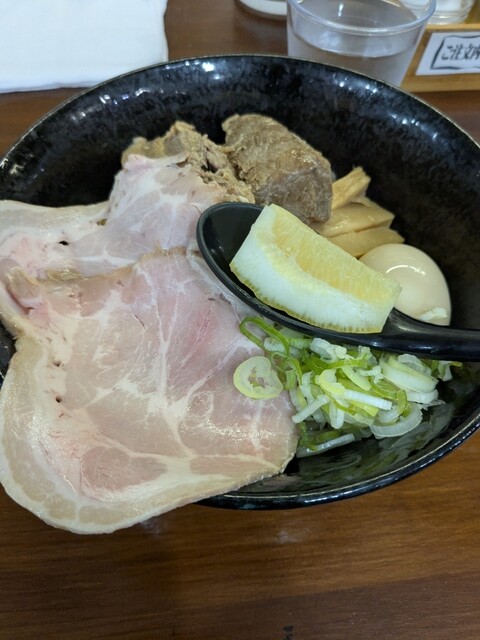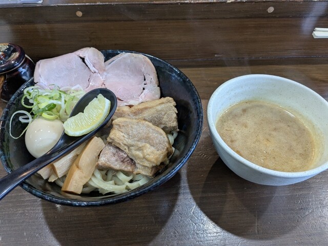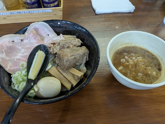 日曜日の18時着で待ち無し。提供まで10分弱。 リサーチ無しで飛び込みで入りましたが、帰ってから色々調べたら Man太郎さんのBlogの取り纏め情報で2011年から「二代目のぶ@河辺」の 新業態としての焼きそば専門店から始まってるみたいですね。 オーダーは「肉鰹つけめん 味玉のせ 1... 詳細を見る