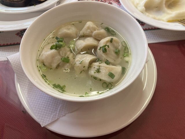 ペリメニセット ペリメニって言うウクライナの水餃子がセットになったペリメニセットを注文したわ! サラダ サラダはレタスとピーマンとニンジンを使っていて、酸味があり、あっさ... 詳細を見る