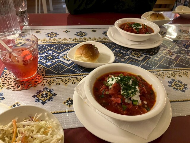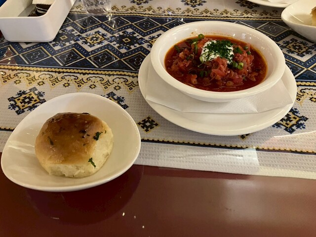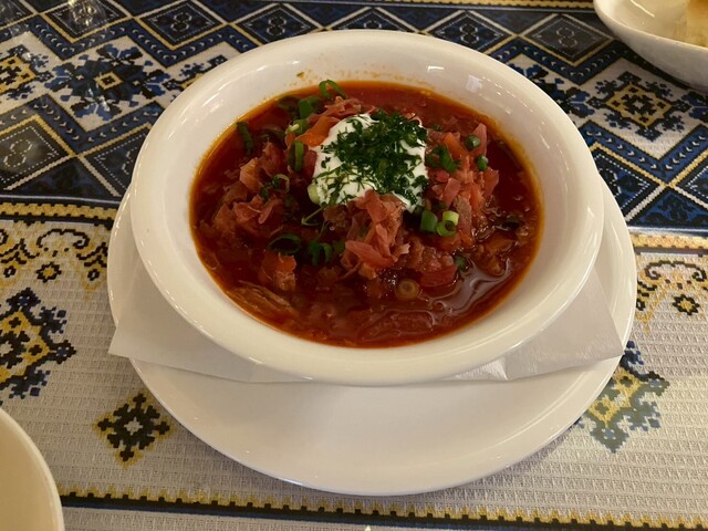 人生初のウクライナ料理。開店は2022年からとの事で、戦争が始まってしまった頃ですね。で、外観は、日本人には、ここは料理店か?と感じるファンシーさ。洋人形や洋食器のお店みたいなので... 詳細を見る