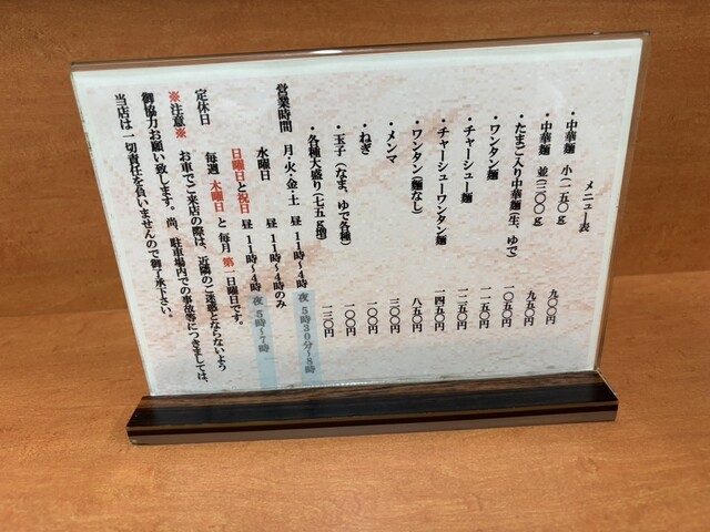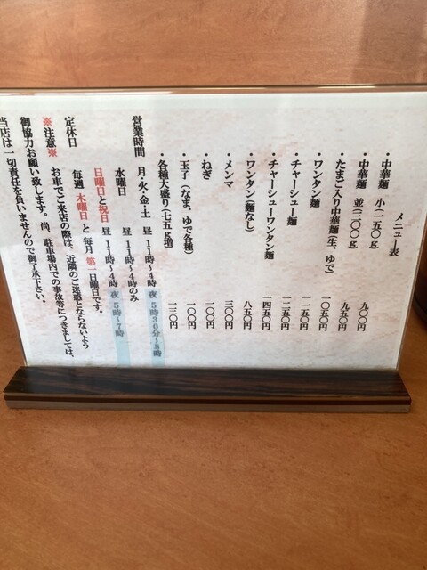 中華麺を注文。30分程度で着丼。