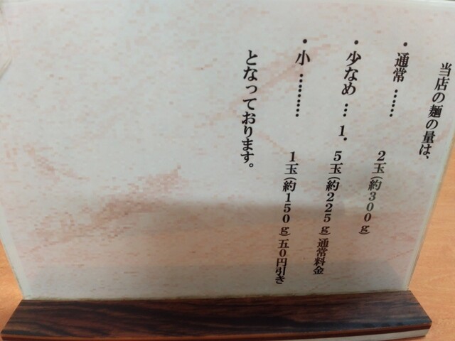 こちらのお店は並が2玉とのことで50円引きの小にしました。