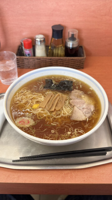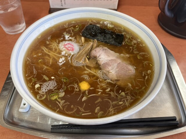 ラーメンを頂きました。丼が大きく、麺というよりは、スープがとんでもない量が入っていました。煮干しの出汁が出て、飽きずに食べれましたが、スープはとても飲みきれませんでした、そういうものなのかもしれませんが。