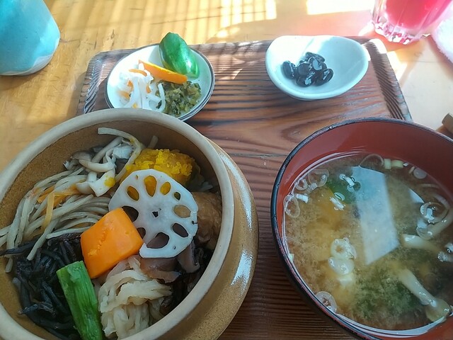 私たちも座敷に案内して頂き、奥多摩釜飯セットを注文しました。