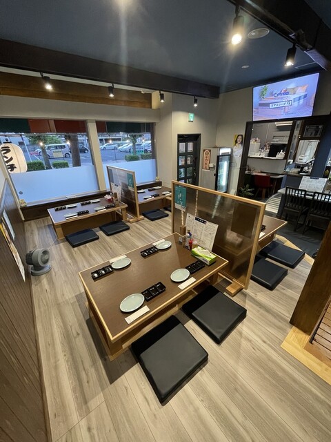 | 空間・設備 | オシャレな空間、落ち着いた空間、席が広い、カウンター席あり、座敷あり、掘りごたつあり、スポーツ観戦可、電源あり、無料Wi-Fiあり |
