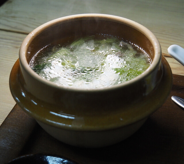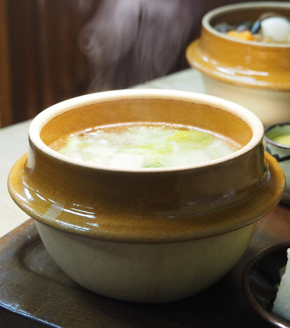 きのこの釜めしは、醤油ベースの炊き込みご飯に香り豊かなきのこがたっぷり。粒感のある魚沼産コシヒカリにしっかり旨みをまとっていて、ご飯好きにはたまらない...