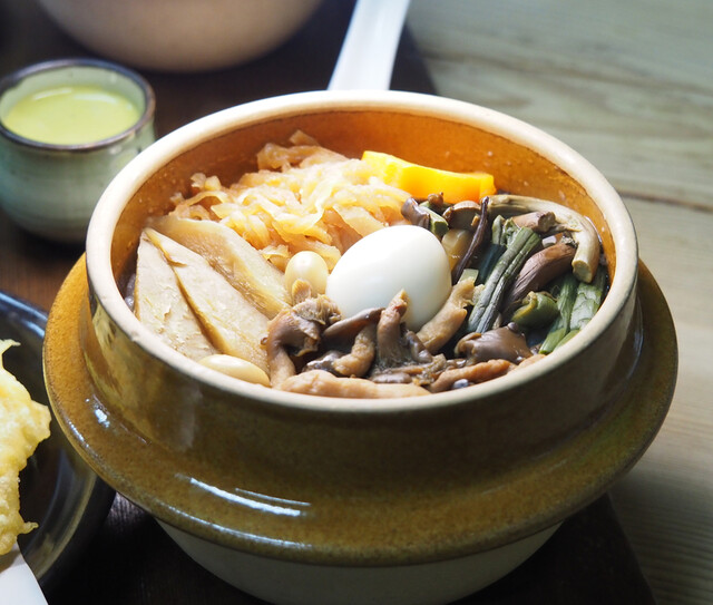 鳩ノ巣駅すぐの“鳩の巣釜めし”で、奥多摩ならではの自然派ランチを満喫。山菜やきのこ、川魚といった地元の食材が、ひとつの釜に詰まった贅沢な一膳です。