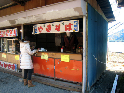 駐車場脇の売店。大盛りサービスの焼きそばで、バイク乗りやドライバーに有名。 |