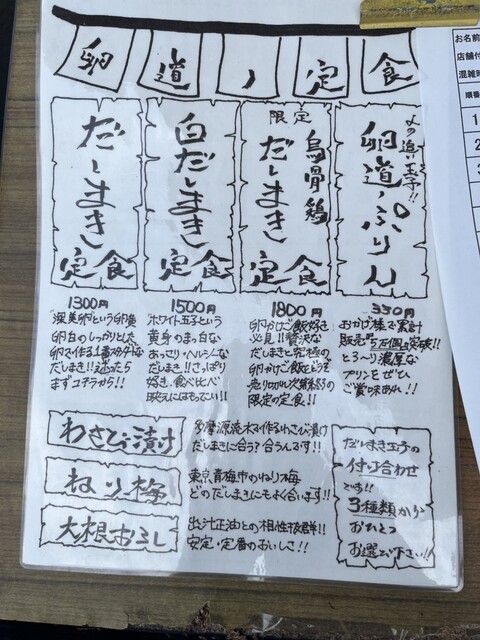 場所は奥多摩駅を出てすぐ、山あいの澄んだ空気の中にひっそりと佇むだしまき玉子専門店「卵道 TAMAコレクション」日曜日の12時頃、10人くらいの待ちがあり人気の程が伺えます。
