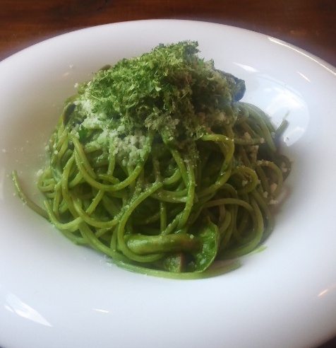 スタンダードなパスタとは別の、一風変わった明日葉パスタですが、