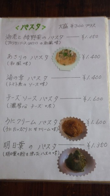 また、「明日葉パスタ」も頂きたいし、「渡り蟹のパスタ」も頂きたい。