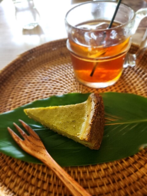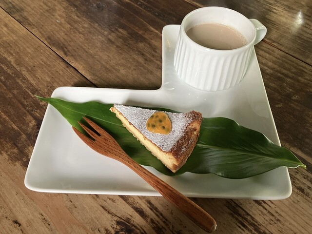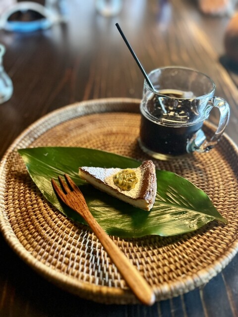 今回、ケーキセットで日替わりのパッションフルーツのチーズケーキとアイスコーヒーを頂きました。