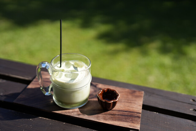 イチゴミルクかき氷と明日葉チーズケーキを頂きました。