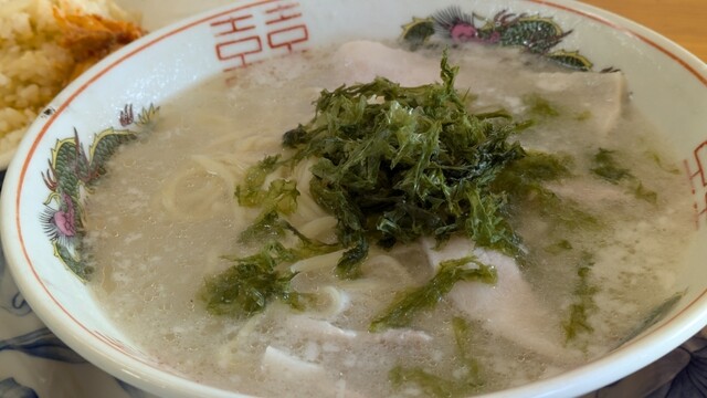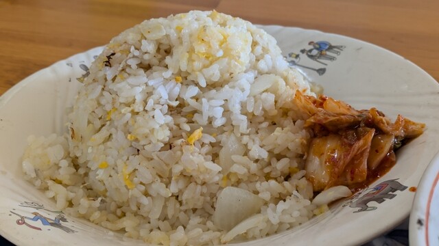 おおいちチャレンジの拉麺屋1軒目です。「らーめん(¥650)」とセットの「炒飯(¥450)」をチョイスです。見た目と雰囲気が、とてもパンチの効いた食堂です。 ( ꈍᴗ... 詳細を見る