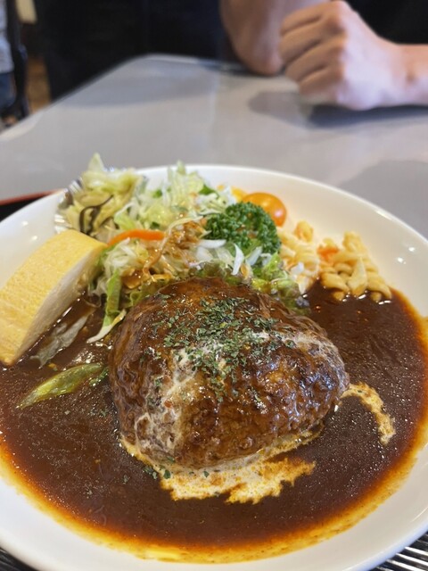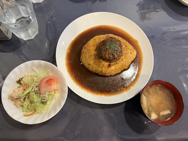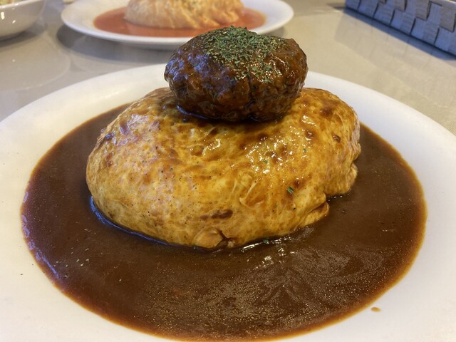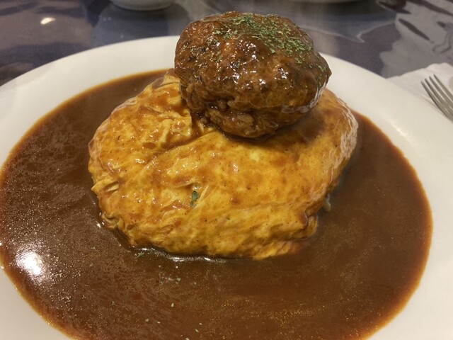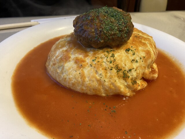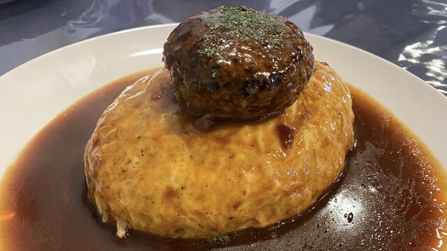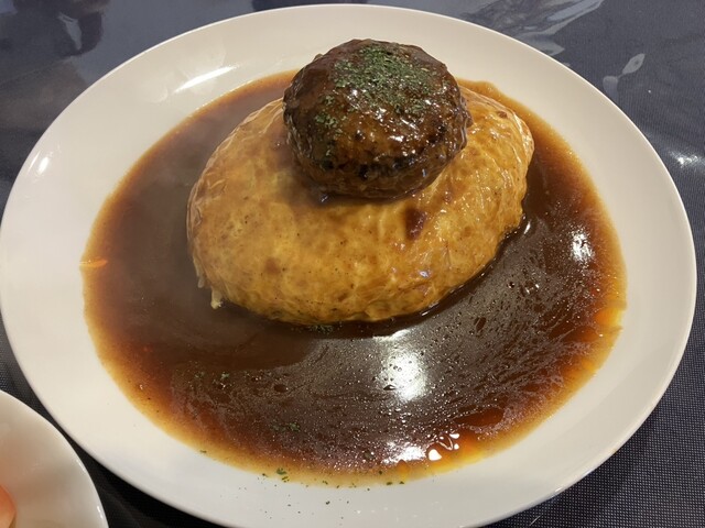 オムライスをデミグラスソースで、ミニハンバーグをトッピング。デミグラスソースに浮かぶオムライスが綺麗。 オムライスの中身はケチャップライスで、マッシュルーム、ハム、玉ねぎと具材が... 詳細を見る
