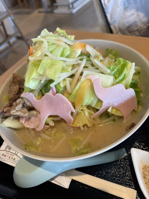 砂丘旨乗せ牛骨ちゃんぽん1200円 動物系白濁醤油?スープ 太ストレート麺 えび、いか、あさり、ベビーホタテ、かまぼこ、ロースハム、キャベツ、もやし、小松菜、ニンジン、別... 詳細を見る