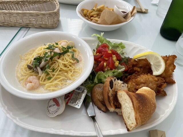 シーフードは活きが良くて美味しい。バケットもカリカリして美味しくいただきました。