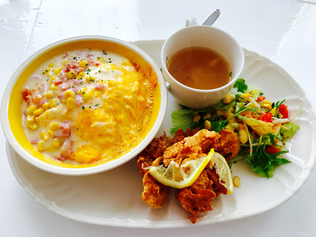 ボリュームがある事は耳にしていたのでクローネAランチを、娘はたくさんは食べられないというのでスフレパンケーキを...