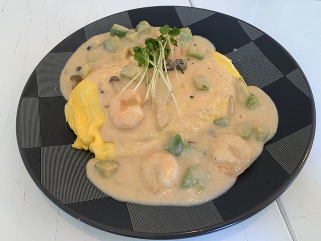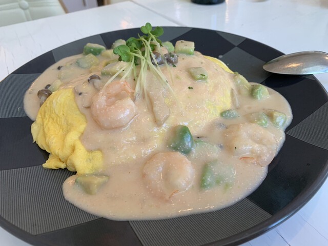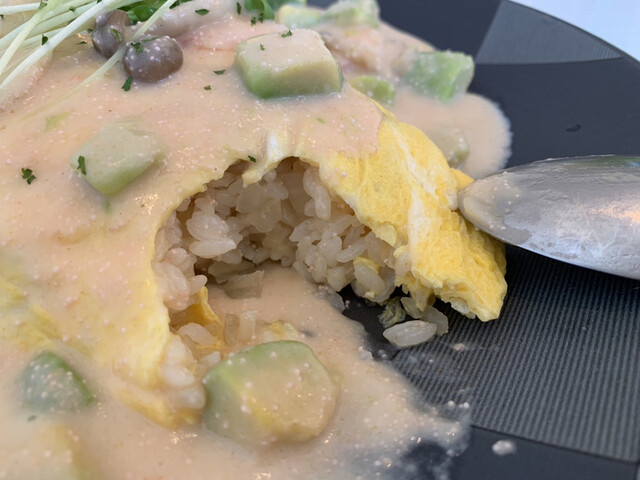 「海老とアボカドの明太クリームオムライス」を注文。980円(税込)