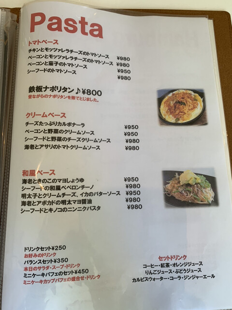 オムライスだけで9種類あるし、パスタも魅力的だし、長さ40㎝のバゲットピザも見てみたい。