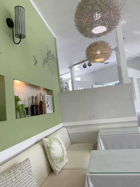 店内はホワイト&薄緑のカラーリング。