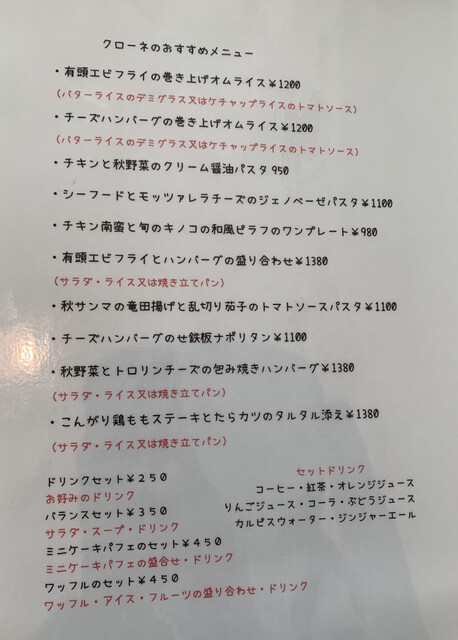 メニューからオムライスを探して