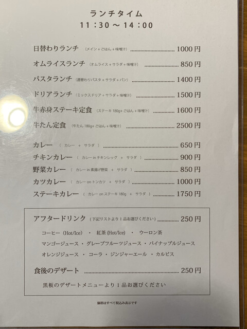 行く前はステーキがいちおしの店かなと思ってましたが、常連さんの方々は日替りランチを注文が多い。
