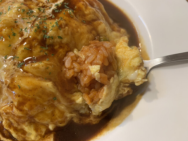 とろとろ玉子にデミグラスソースのオムライスは真っ当な洋食店の味。