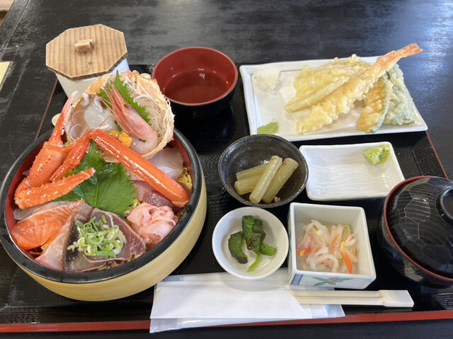 かいがんさんは 朝7:00オープンと 嬉しい、限りです カニの食べ放題もあり 海鮮丼か蟹か迷いますが ここは海鮮丼で勝負します ちなみに、海鮮丼に天ぷらがついて 2... 詳細を見る