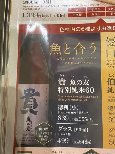 出張先の米子駅前、海鮮居酒屋に入りました。