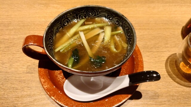 よくある赤いチリソースではなく黒酢主体のあっさりとした味付け。うん、普通のこってりしたエビチリとは違う方向性で、これはこれでとても美味。その時々の気分でこの選択肢があると嬉しい。美味しかった、ご馳走様でした。