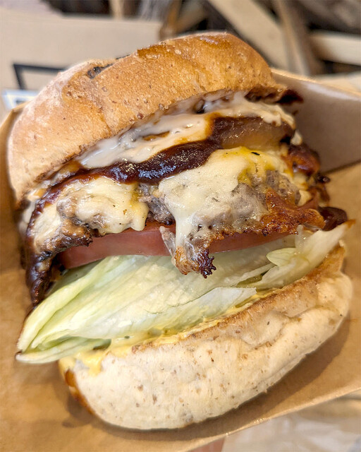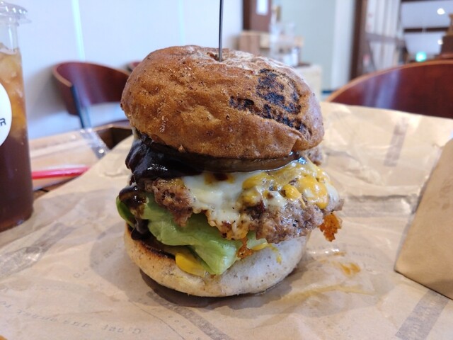 ずっしり肉肉しいパティ。具材に負けない香り良くもちもち感のあるバンズ。食欲そそるソース。