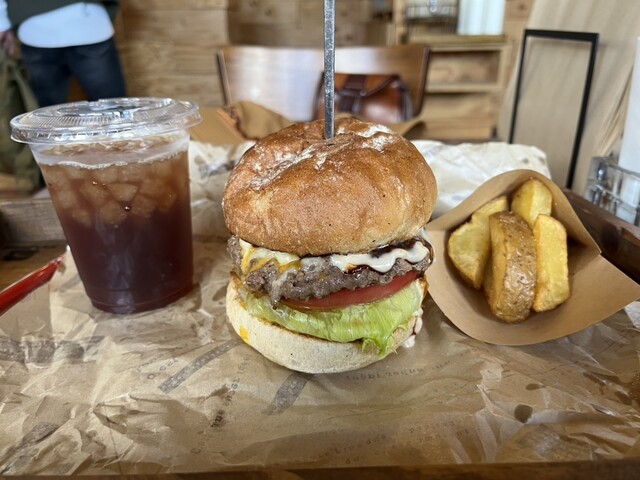 大自然に囲まれ緑豊かな景色に癒されながらいただくハンバーガー