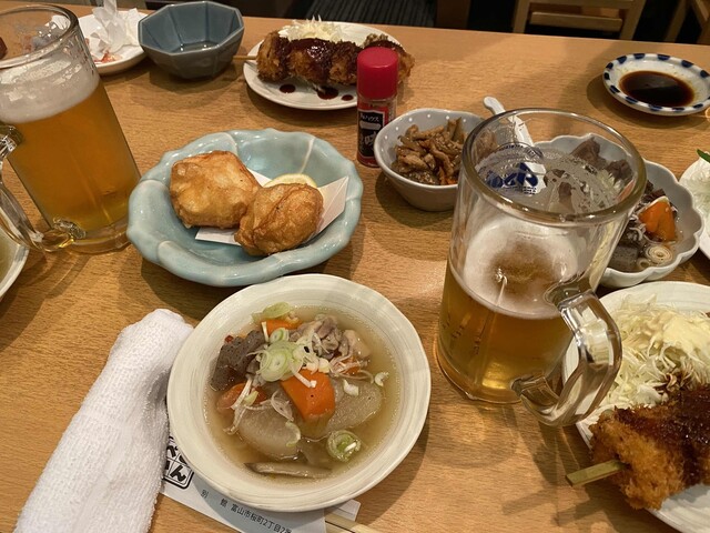 とんぺいは富山駅近くにある居酒屋さん。 お店にはGWの夜8時過ぎに訪問。店内は満席だったが、運よく1つ空いていたカウンター席に座ることが出来た。 まずはとりあえずの生ビール中(スーパードライ)390円を注文。 お通しの小鉢には細かい牛ばら肉と春雨、こんにゃく、大根、白菜、水... 続きを読む»