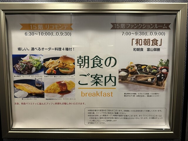 富山2日目の朝食はガッツリ食べようと宿泊したホテルの最上階リコモンテさんでモーニングビュッフェ